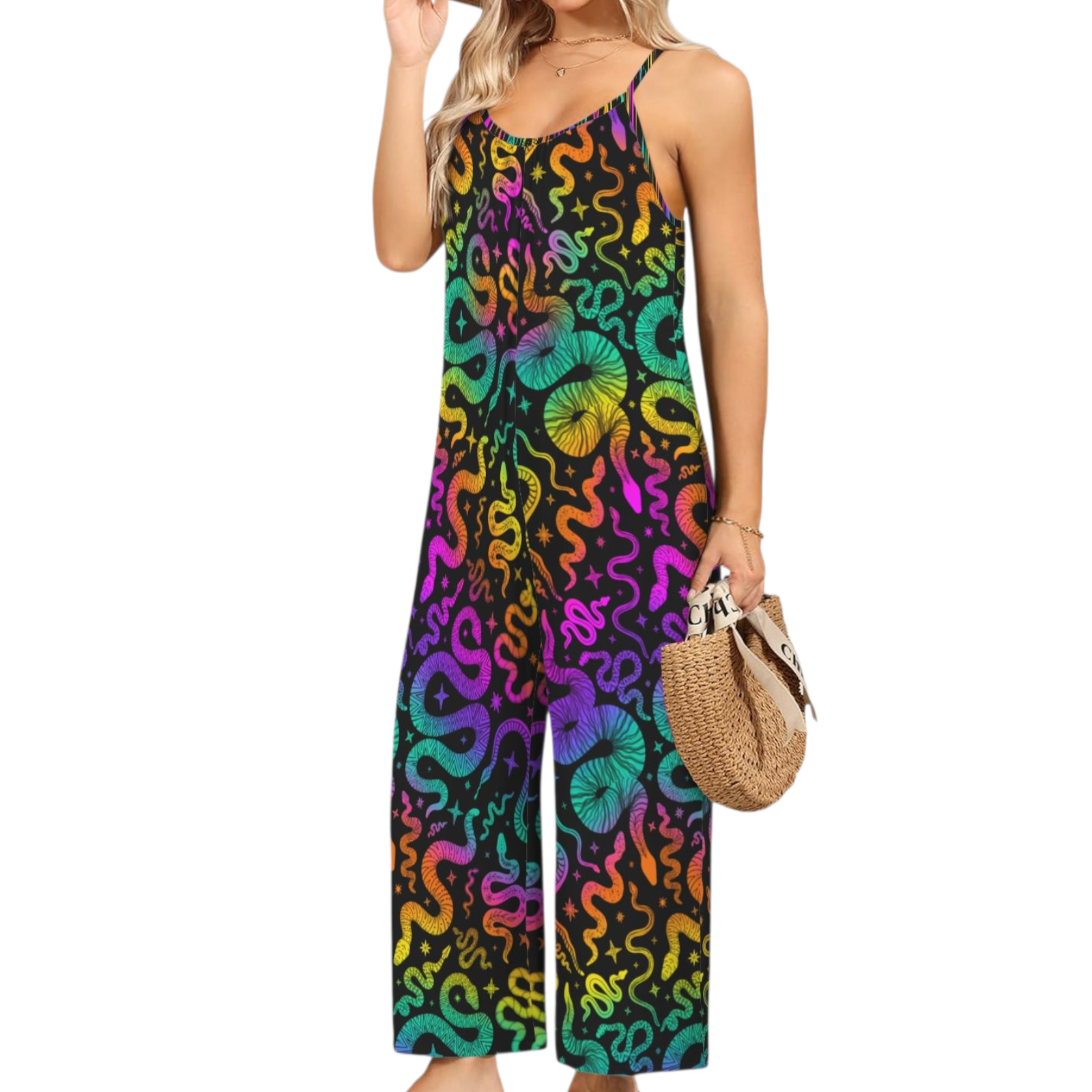 - this jumpsuit showcases my original hand-drawn illustration design, permanently infused into the fabric using sublimation printing before being carefully cut and sewn into the final garment