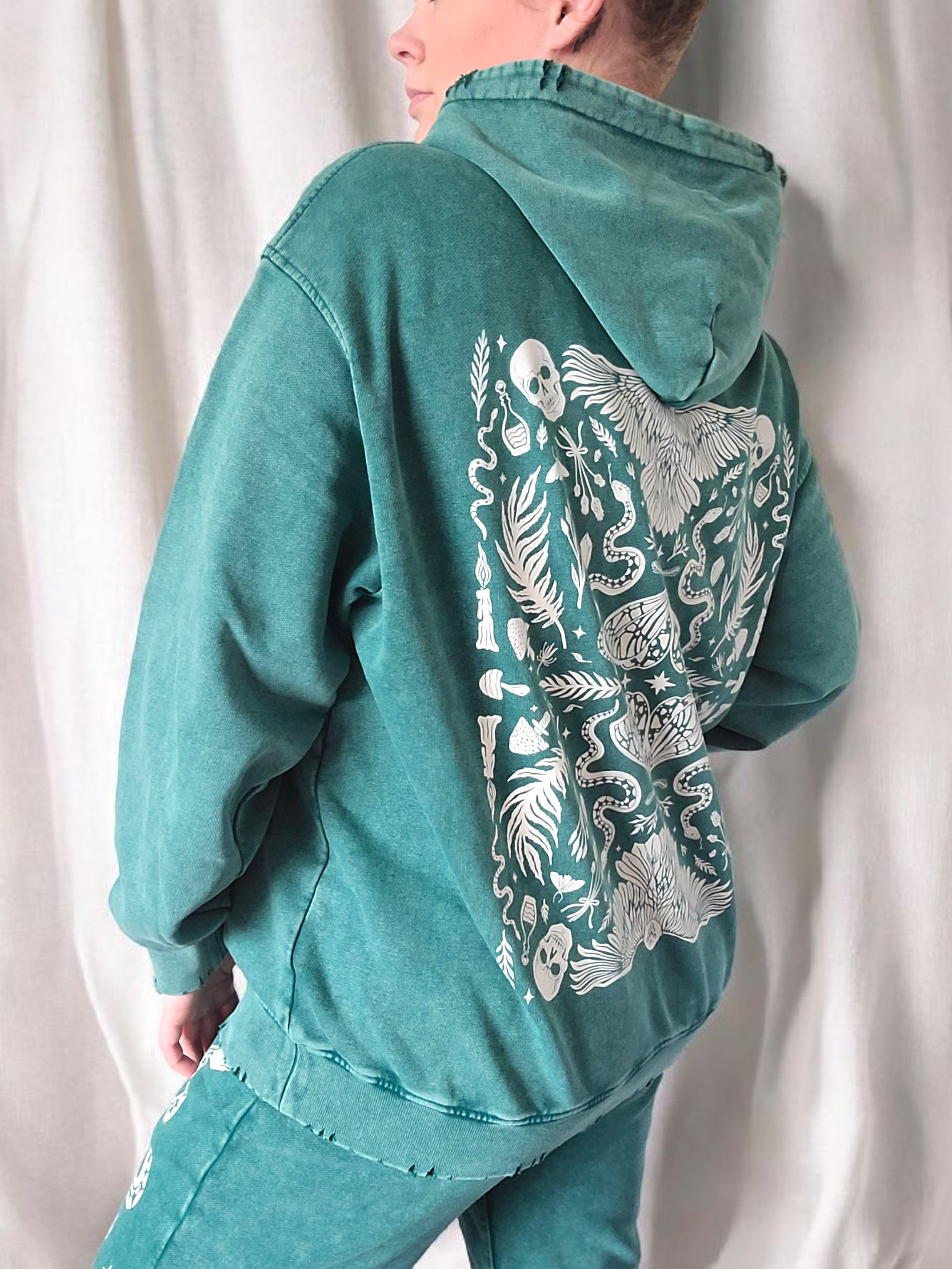 Forest Ritual Acid Wash Hoodie ✴ Dusty Green