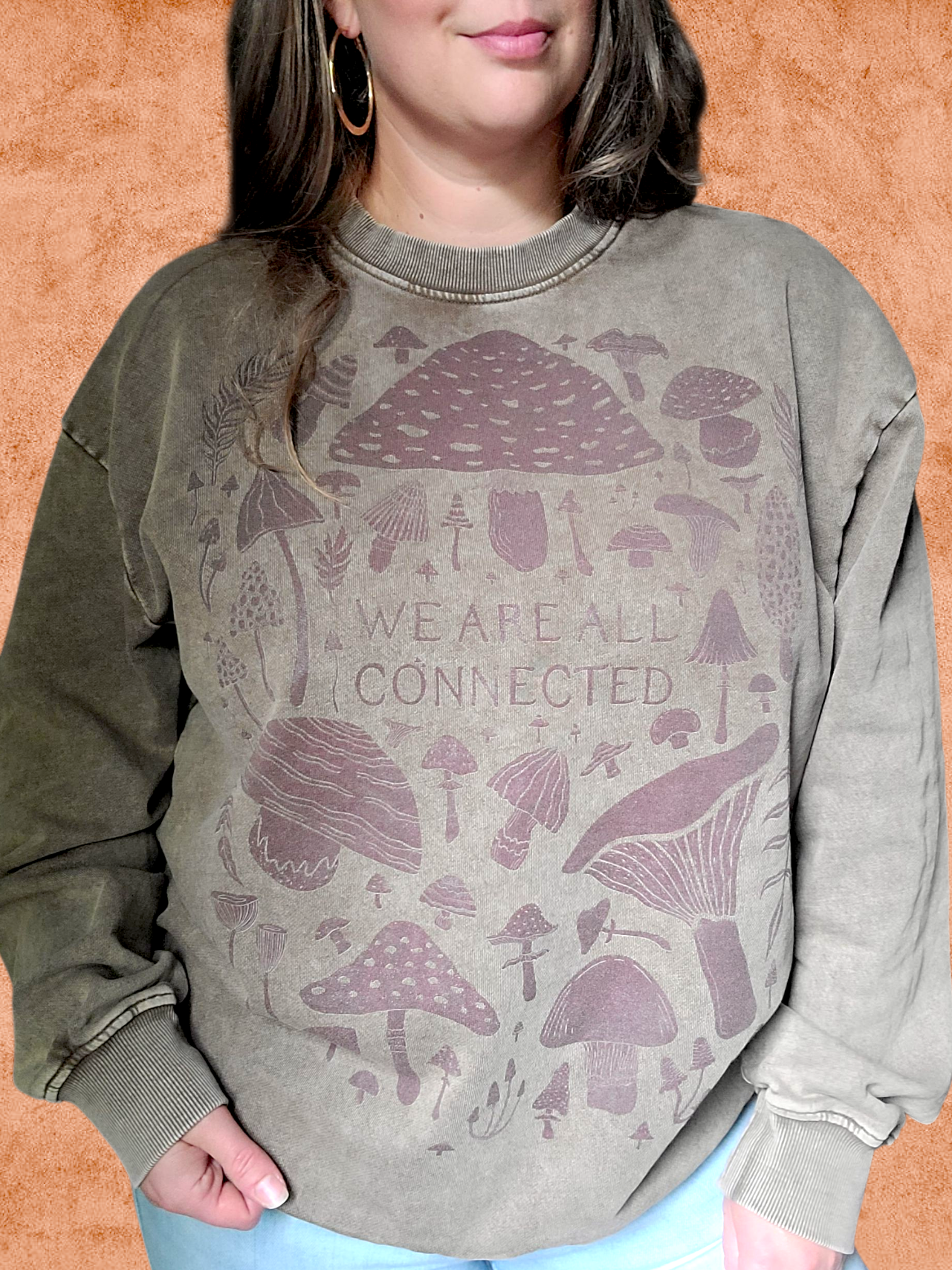 This design is inspired by the hidden networks of nature the mycelium, an underground web of fungi that quietly connects forests, plants, and trees. Just like these threads of life beneath the soil, we too are deeply interwoven with each other and with the Earth. The mushrooms illustrated here are a reminder of the many shapes and forms of connection, each unique yet part of the same living system. The phrase “We Are All Connected” sits at the center to reflect this truth. That even in our differences, we belong to one great web of life, unseen but always present.